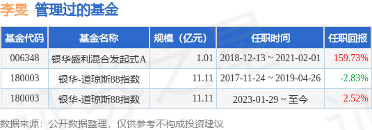 李旻先生:北京大学金融学硕士,2008年7月加入银华基金,历任助理行业研究员、行业研究员、研究组长、基金经理助理,现任基金经理。自2017年11月24日起担任“银华-道琼斯88精选证券投资基金”基金经理。2018年12月13日起至2021年2月1日担任银华盛利混合型发起式证券投资基金基金经理。2023年01月29日担任银华-道琼斯88精选证券投资基金基金经理。