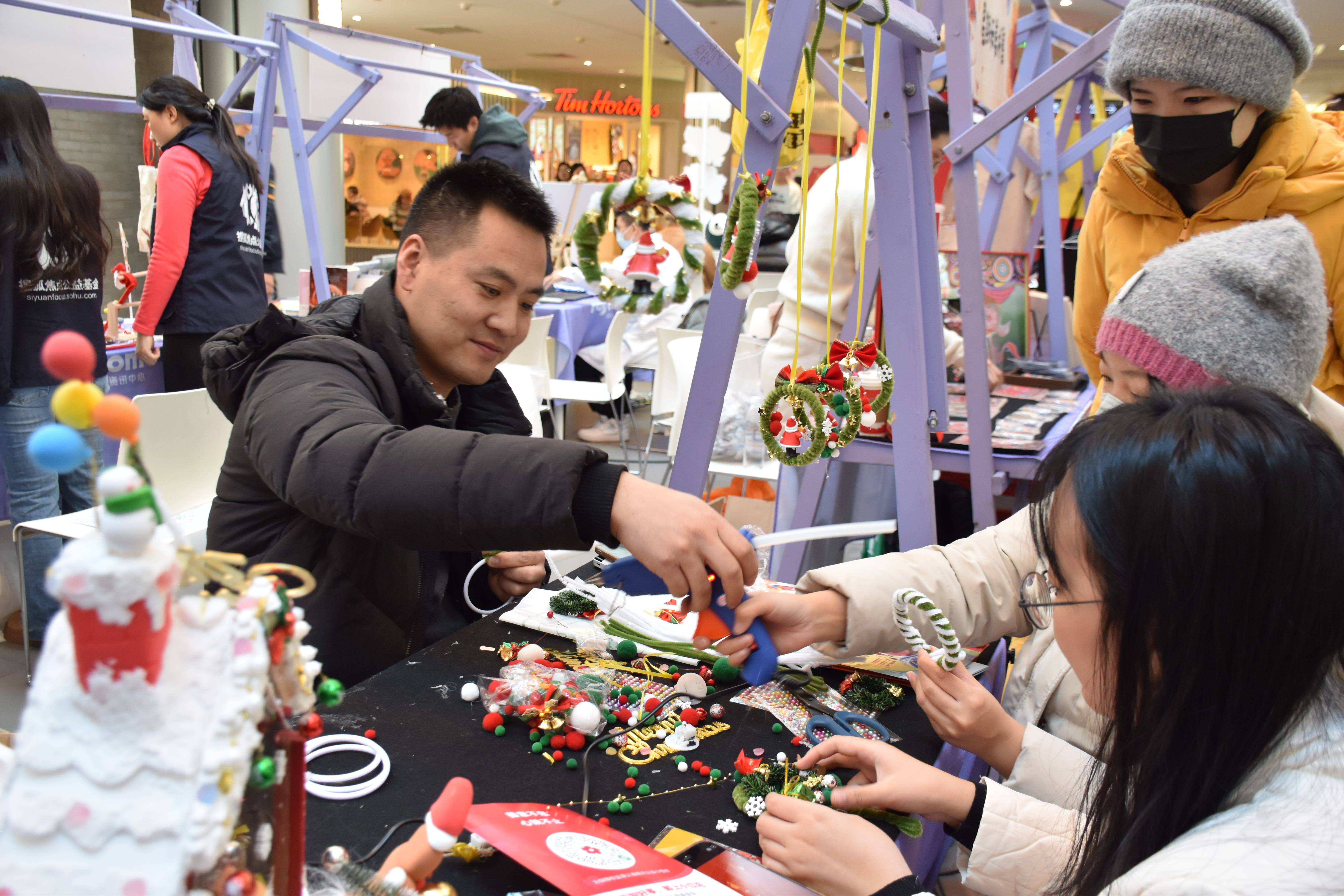 北京瑶蓝艺术中心在本次集市开设圣诞DIY摊位,吸引了许多想要“闹中取静”的人。