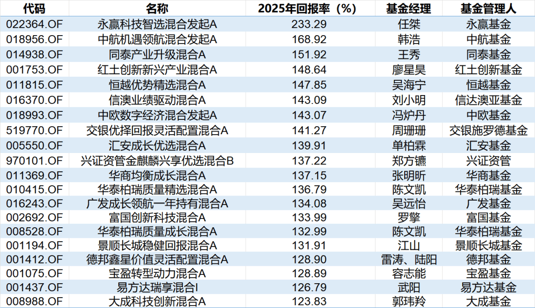 在2007的超级牛市中,王亚伟管理的华夏大盘精选曾以226.24%的回报,成为国内公募股基收益率的神线年里,这一纪录无人能破,亦再无年度“两倍基”出现,2025年的永赢科技智选创下了新纪录。这也说明市场的整体走好,的确提供了巨大的收益空间。