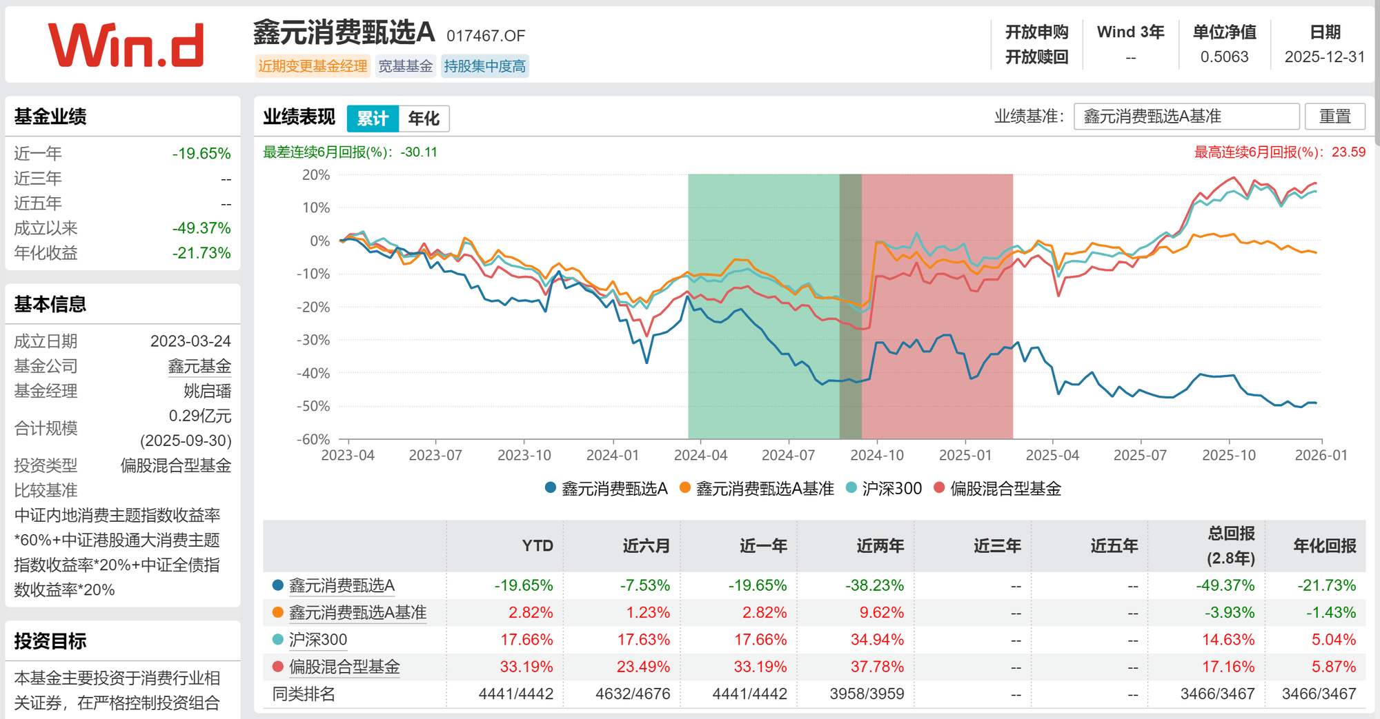 鑫元消费甄选季度报告显示,在频繁调仓换股过程中,该基金单季度净值增长率多数时候为负,并普遍跑输业绩比较基准。根据Wind数据,鑫元消费甄选2025年净值全年下跌超19%,近两年跌幅超过38%,成立以来总亏损接近50%。