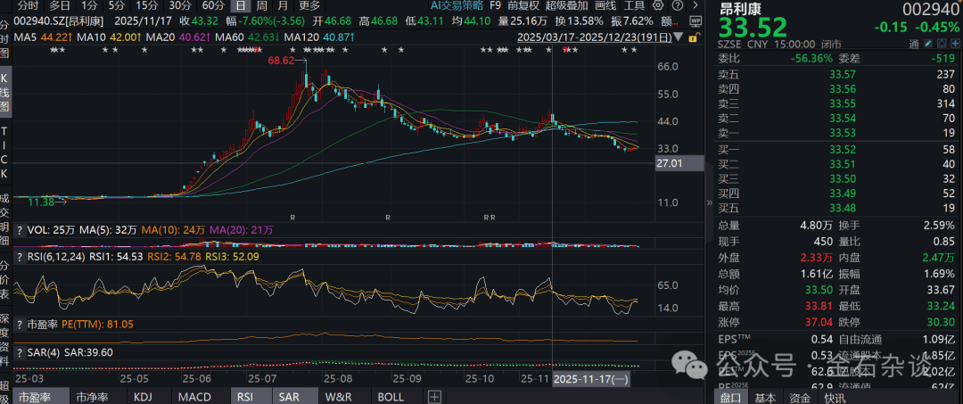 24年底第一大持仓是康为世纪,彼时处于康为世纪(核酸检测)的历史高位,然后一季度暴跌33%;一季度第一大持仓是联影医疗(医学影像设备),然后买完后就一直跌,二季度清仓;二季度第一大持仓是昂利康,买完后又是一路跌。