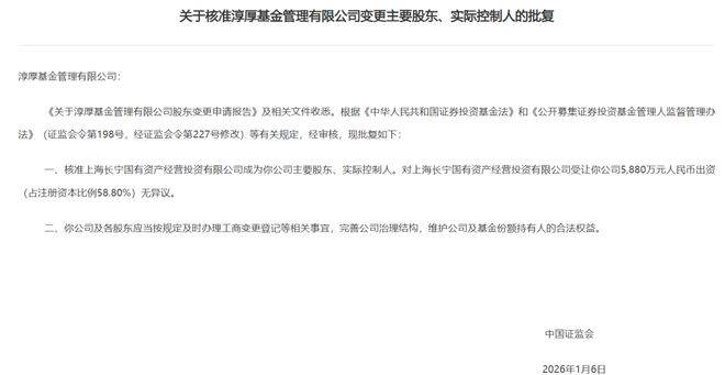 2026-01-14交易所,交易所排名,交易所排行,加密货币是什么,加密货币交易平台,加密货币平台,币安交易所,火币交易所,欧意交易所,Bybit,Coinbase,Bitget,Kraken,全球交易所排名,交易所排行2026年1月6日,证监会批复,上海长宁国有资产经营投资有限公司(下称“长宁国资”)出资5880万元,拿下淳厚基金管理有限公司(下称“淳厚基金”)58.8%的股份,成为其主要股东、实际控制人。