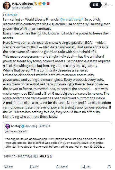 网友注意到,这已非孙宇晨第一次遭遇类似困境。作为波场TRON的创始人,这位1990年出生的年轻富豪,凭借才华与眼光,在加密货币领域开辟出一片天地。他毕业于北京大学历史系,并获得宾夕法尼亚大学东亚研究硕士学位,堪称学霸。然而,就是这样一位年轻有为的企业家,却在与特朗普关联公司的合作中碰了钉子。有分析人士指出,WorldLiberty在去年11月实施的一项变更,允许该公司将任意用户的WLFI代币重新分配给他人。在孙宇晨看来,这完全是针对其资产的非法操作。更让人细思极恐的是,WorldLiberty方面称,冻结孙宇晨代币部分原因在于他购买价值1亿美元的特朗普Memecoin。此理由引发网友愤怒——投资自由难道也要被限制吗?孙宇晨在社交平台上发文称,遗憾的是,WorldLiberty项目团队中部分人的运营方式,明显违背了特朗普总统的价值观。这番话背后究竟隐藏了怎样的内幕,不免让人浮想联翩。目前,WorldLiberty方面拒绝置评,而孙宇晨的诉讼已进入司法程序。这起涉及数亿美元的纠纷,最终会真相大白,还是另有隐情,我们拭目以待。对于这位90后富豪怒告特朗普关联公司的事件,你怎么看?欢迎在评论区分享你的看法。返回搜狐,查看更多
