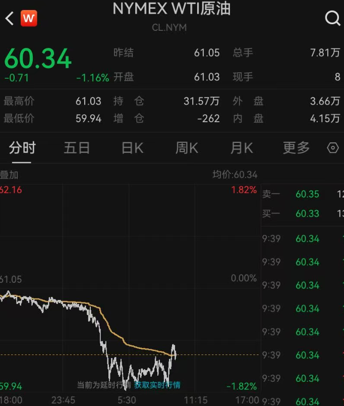 国际油价也小幅下挫,截至发稿,布油每桶报64.22美元,WTI原油每桶报60.34美元。