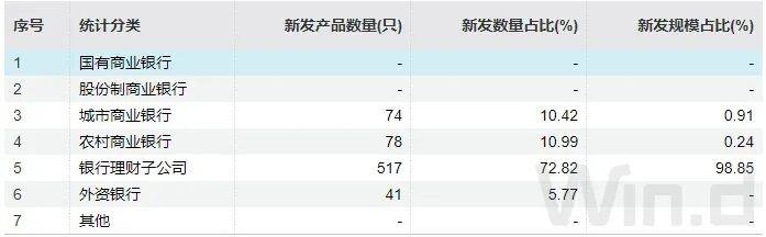 城市商业银行与农村商业银行在发行机构数量上表现活跃,构成银行系产品发行的重要补充力量。城市商业银行有74家参与发行,占比10.42%;农村商业银行有78家参与发行,占比10.99%。