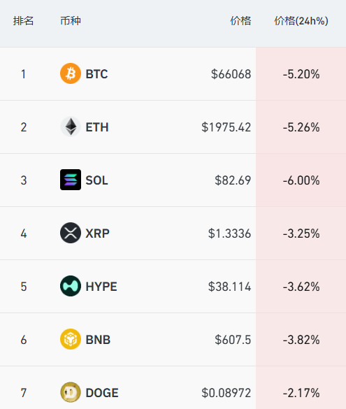 加密货币方面,主要币种跌幅进一步扩大,比特币跌超5%,最新报6.6万美元/枚。Coinglass数据显示,过去24小时,全市场超12万人爆仓。